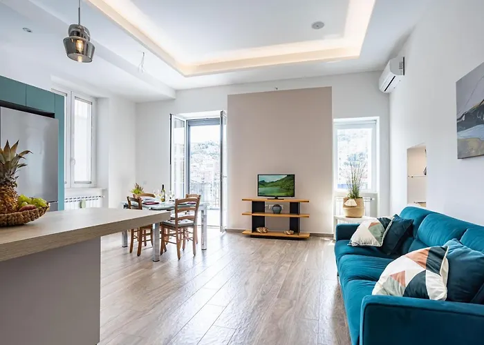 The spacious 90 m² Hostly - Tarsia 50-Beautiful Terrace On Naples Apartment lies around 20 minutes' walk from LAES - La Napoli Sotterranea and approximately a 5-minute walk from Dante tube station. The 2-bedroom apartment has a patio with views of the sea.